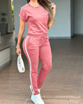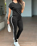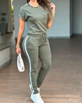 Combineer moeiteloos comfort en stijl met onze Tweedelige Dames Set, bestaande uit een casual broek en een bijpassende top. Ideaal voor een relaxte maar trendy look, deze set is perfect voor dagelijks gebruik, vrije tijd of informele bijeenkomsten.