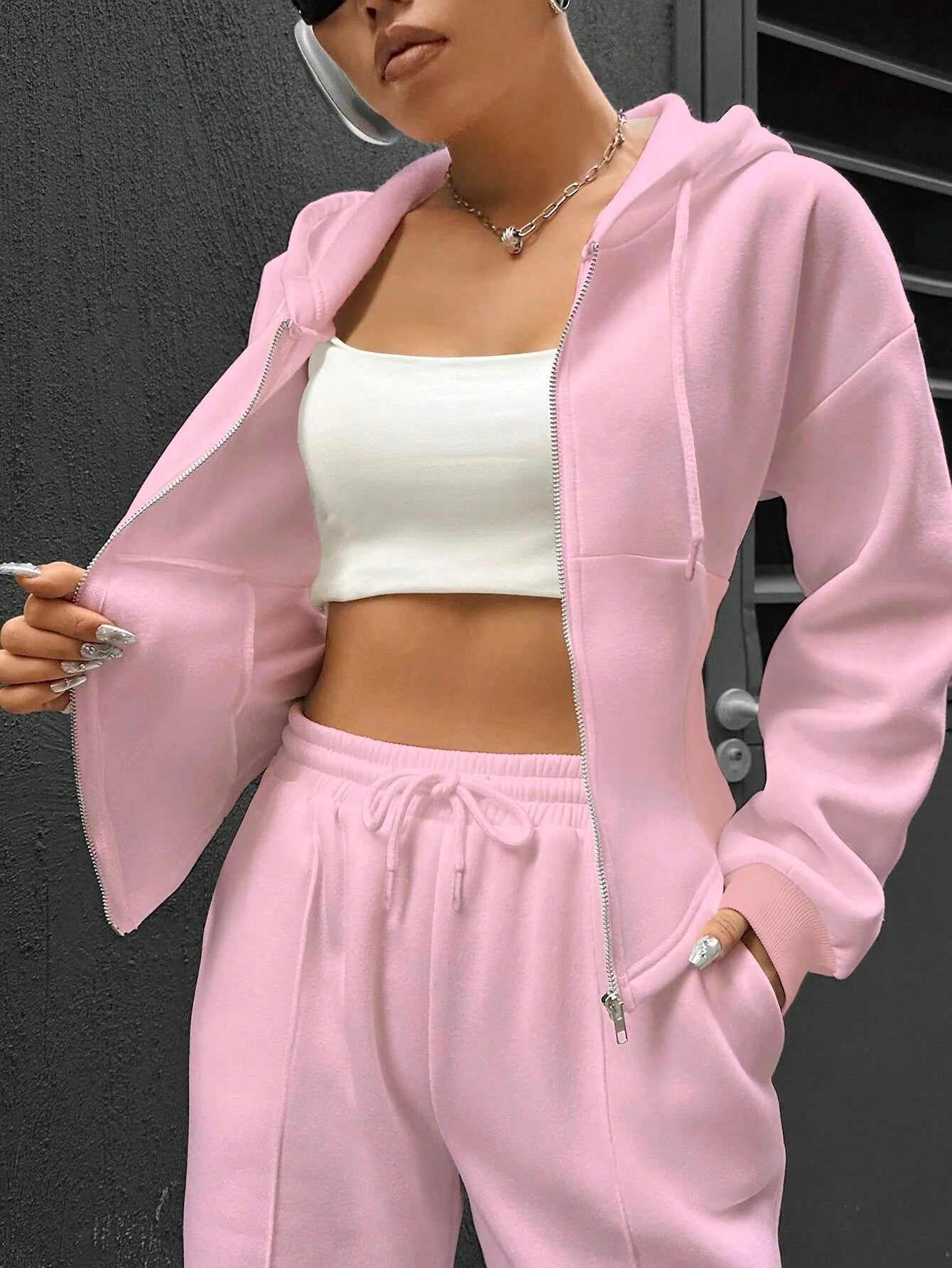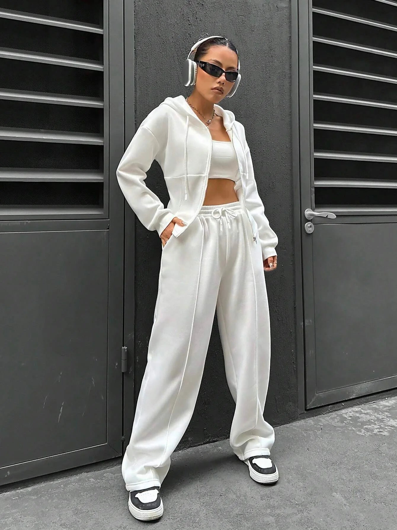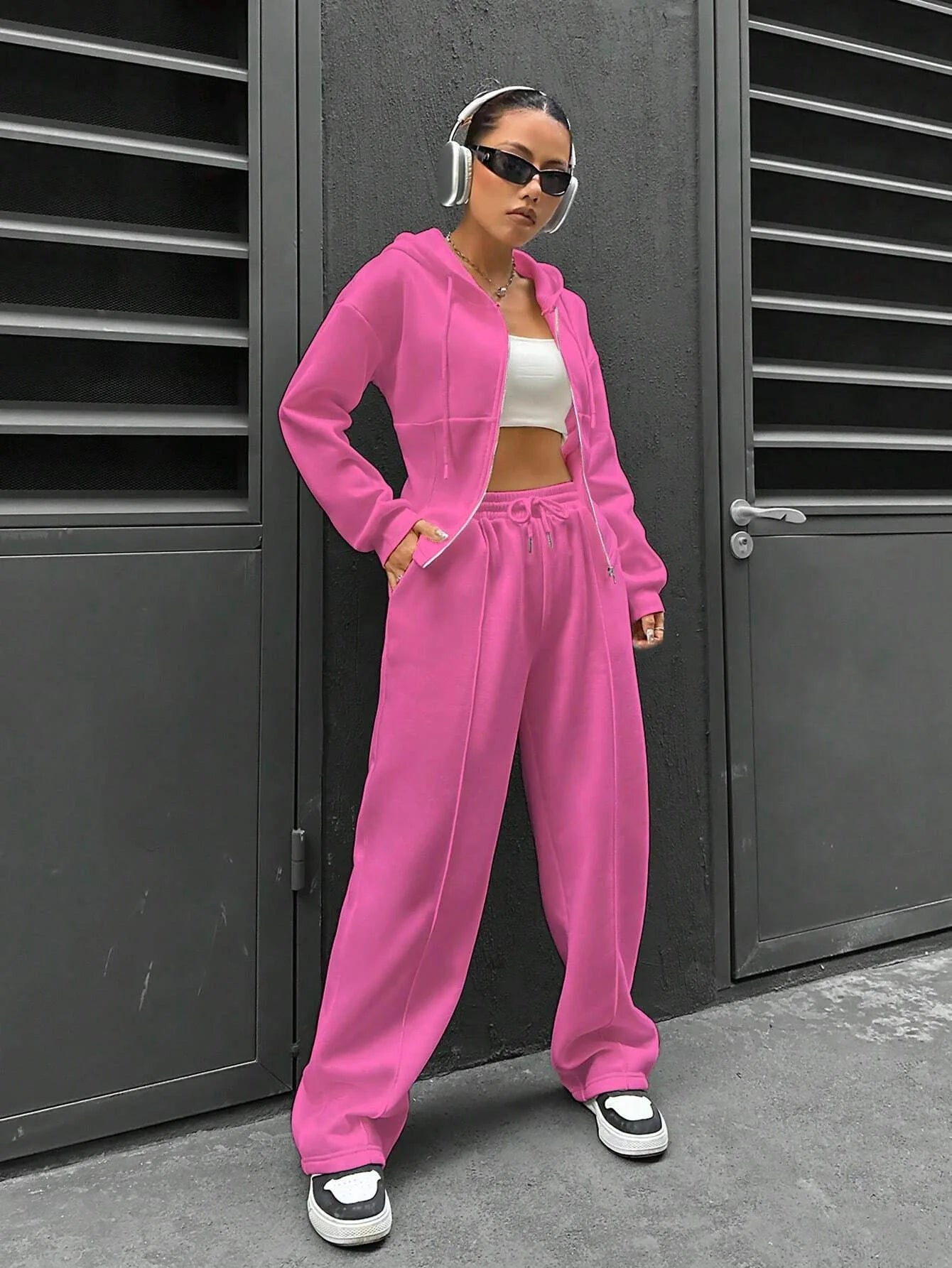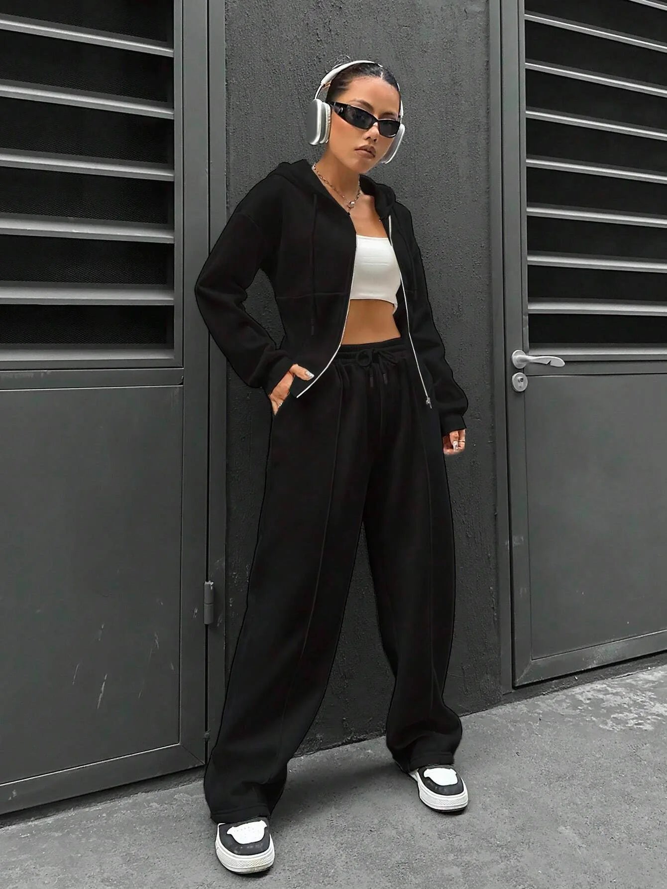 Blijf moeiteloos stijlvol én comfortabel met onze 2-Delige Casual Trainingspak Set met Lange Mouwen. Deze set bestaat uit een comfortabele top met lange mouwen en een bijpassende broek, perfect voor loungen, wandelen of een casual dagje uit.