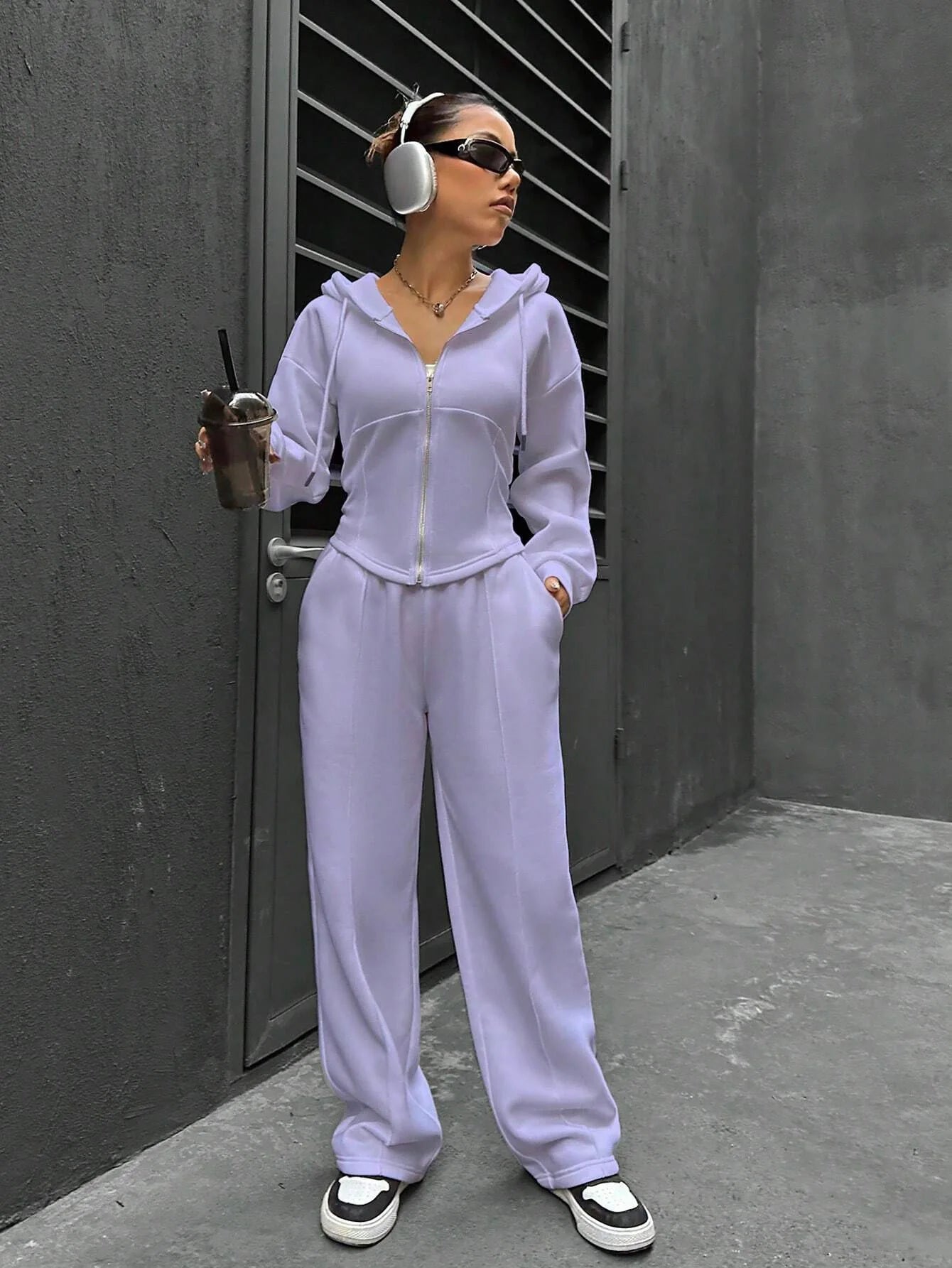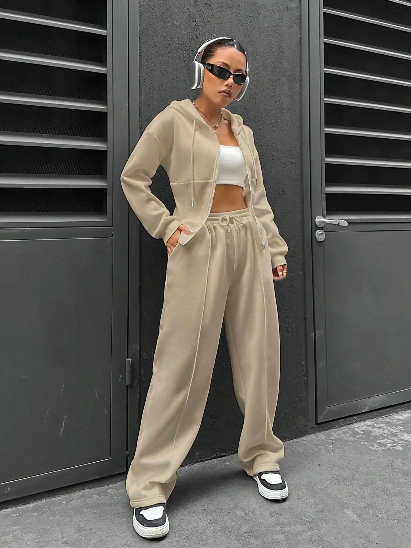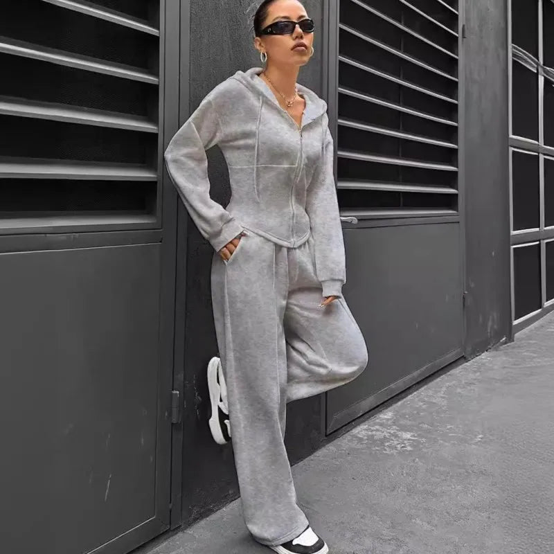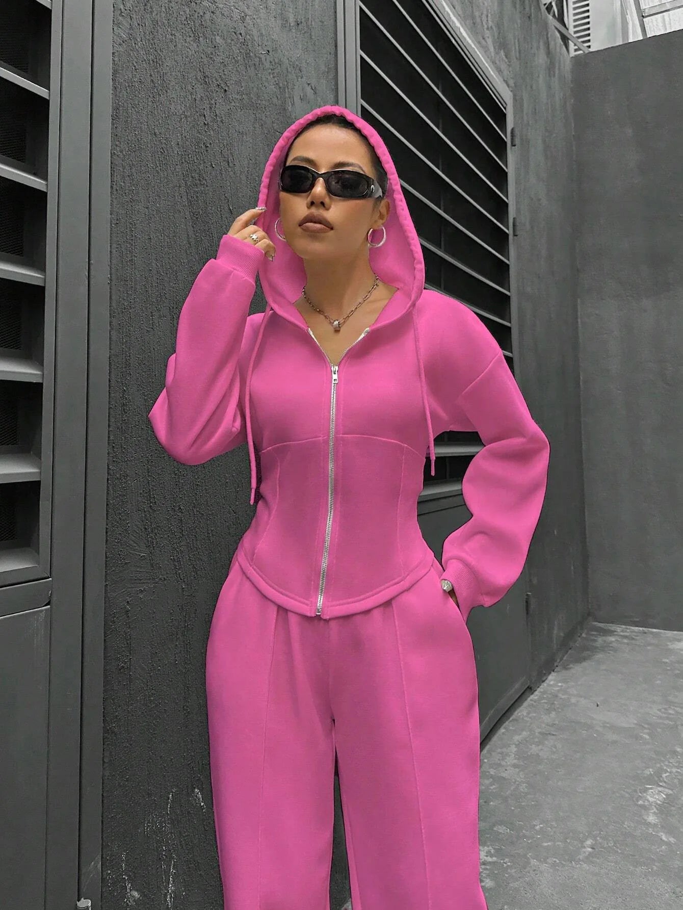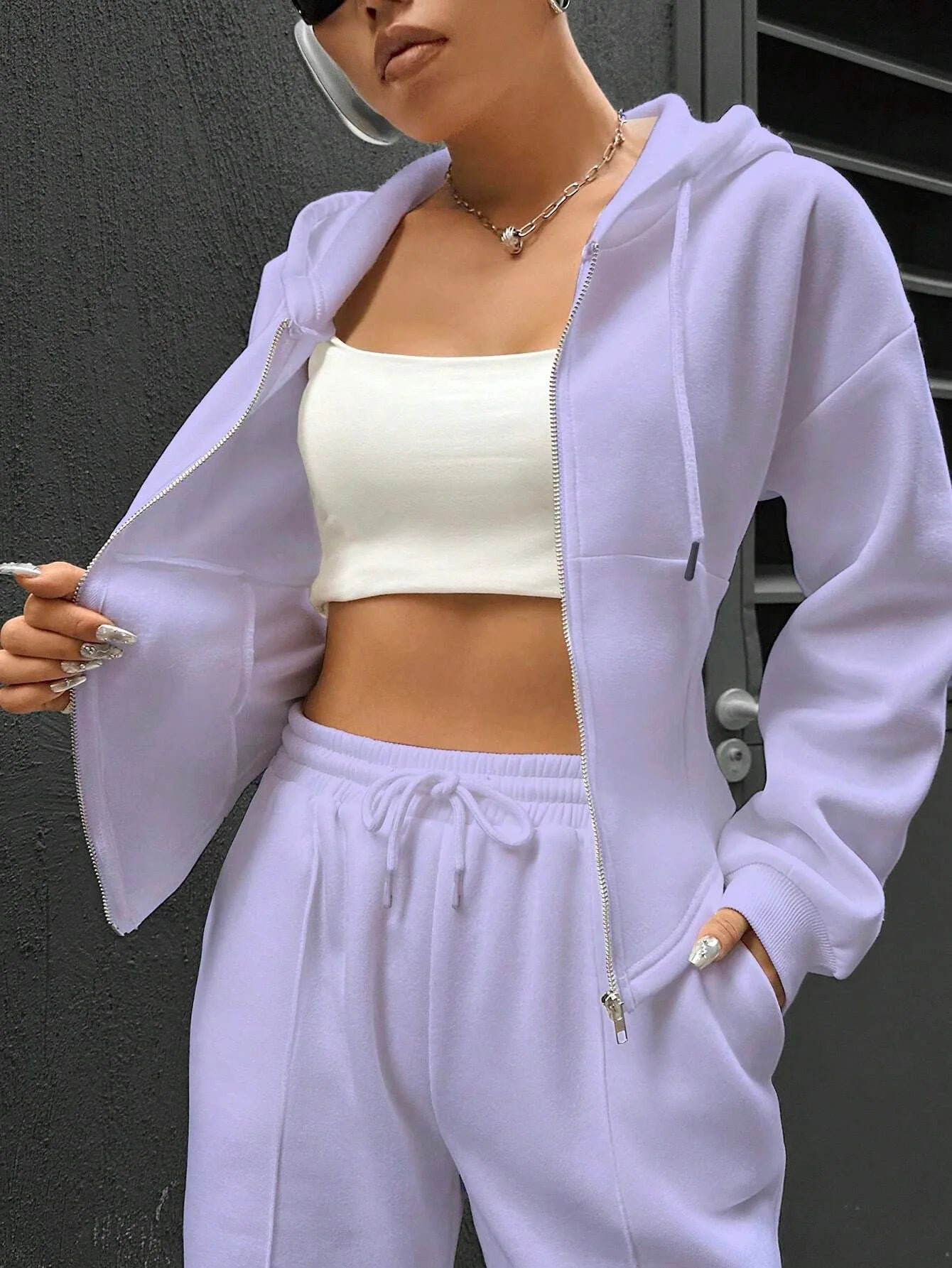 Blijf moeiteloos stijlvol én comfortabel met onze 2-Delige Casual Trainingspak Set met Lange Mouwen. Deze set bestaat uit een comfortabele top met lange mouwen en een bijpassende broek, perfect voor loungen, wandelen of een casual dagje uit.