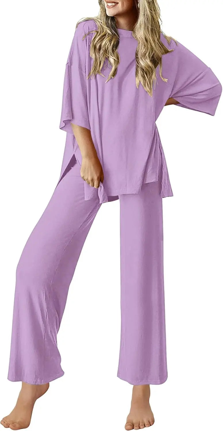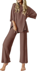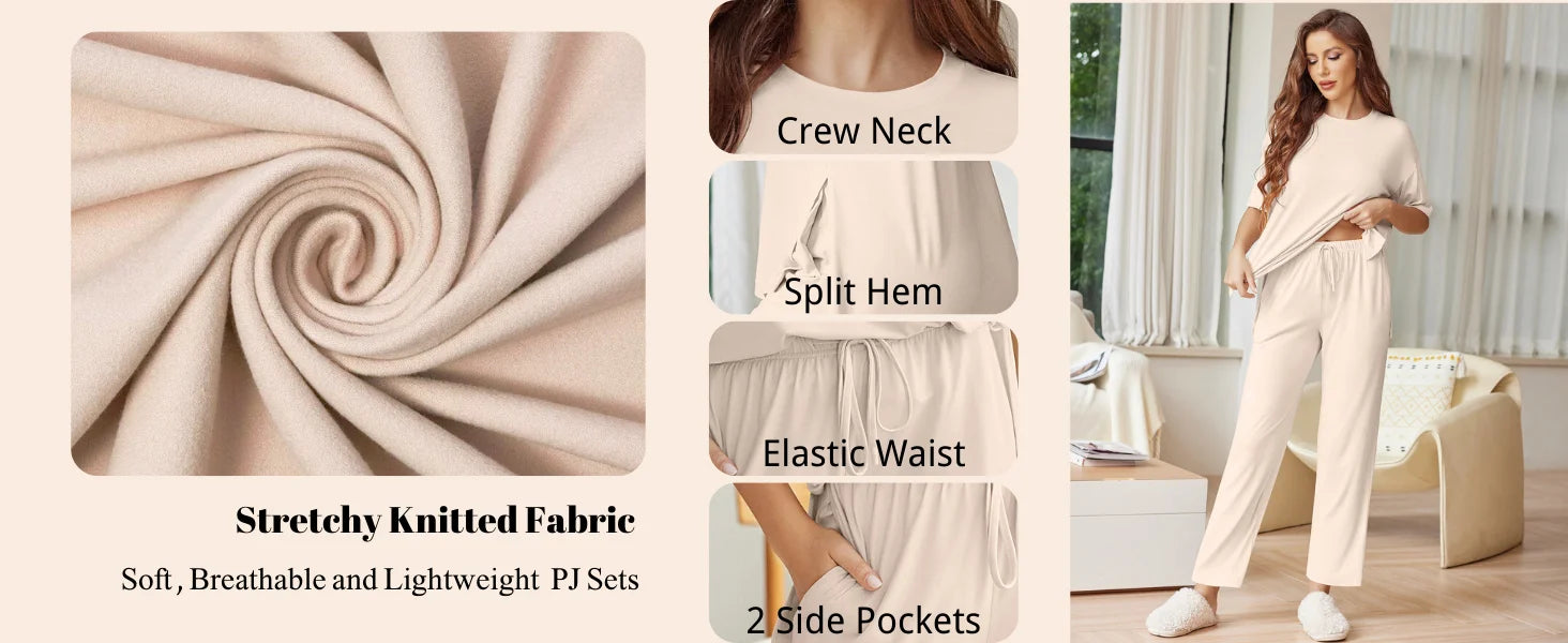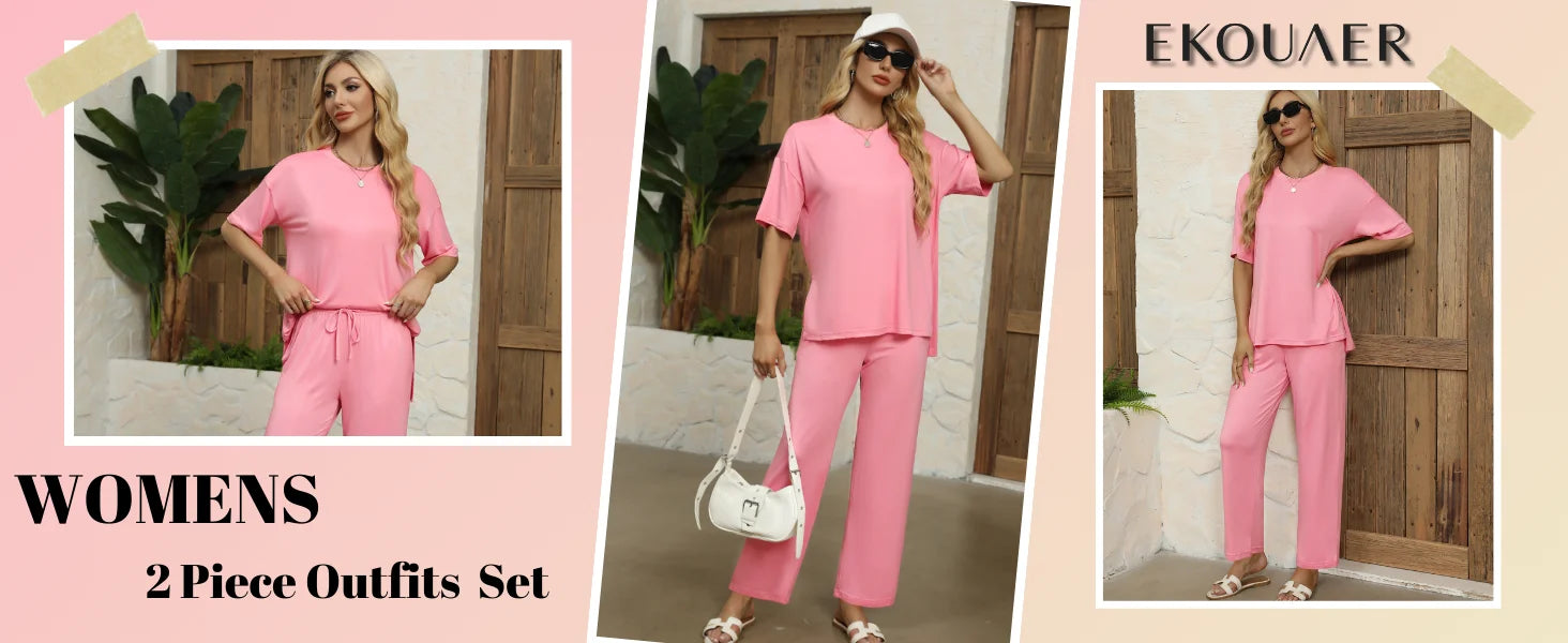 Ekouaer Lounge Sets for Women Short Sleeve Tops and Long Pants