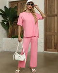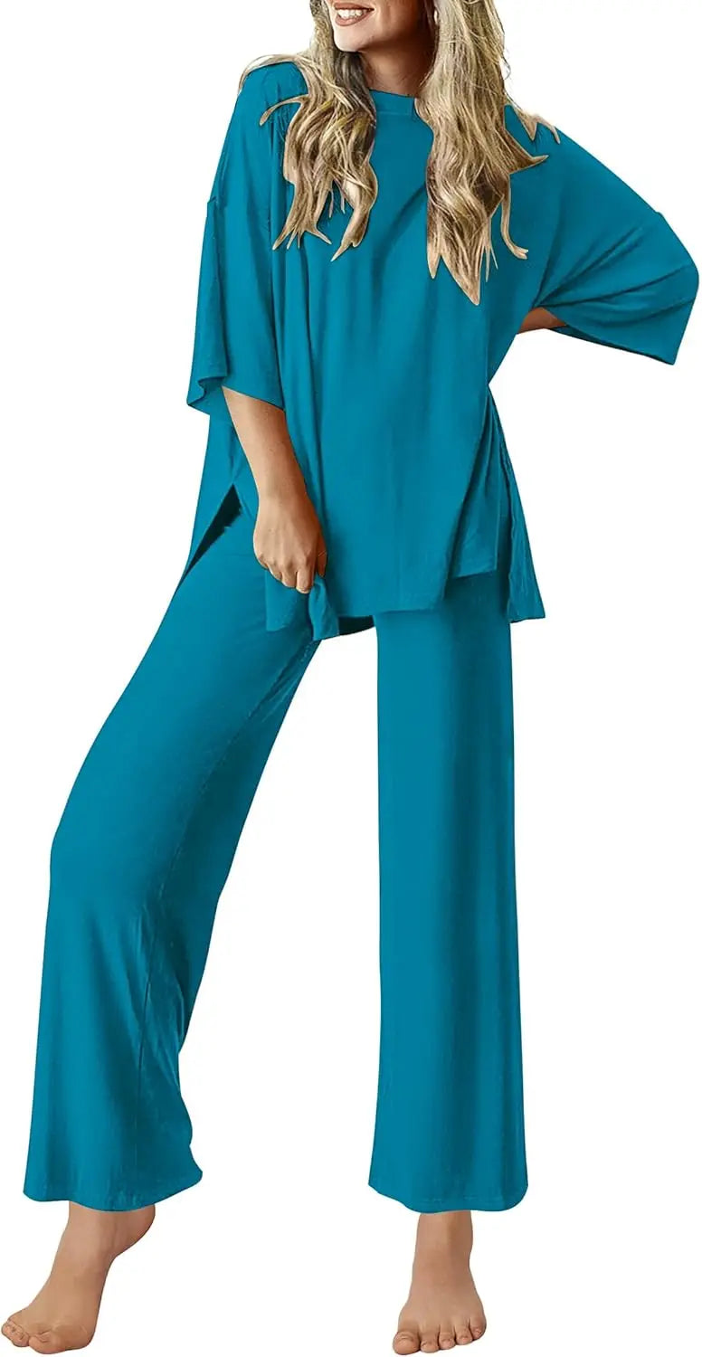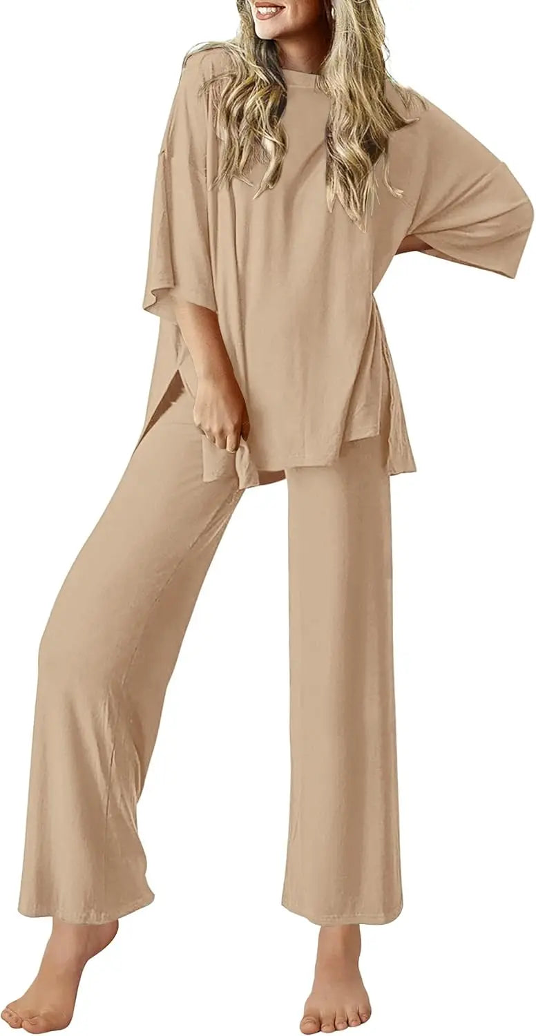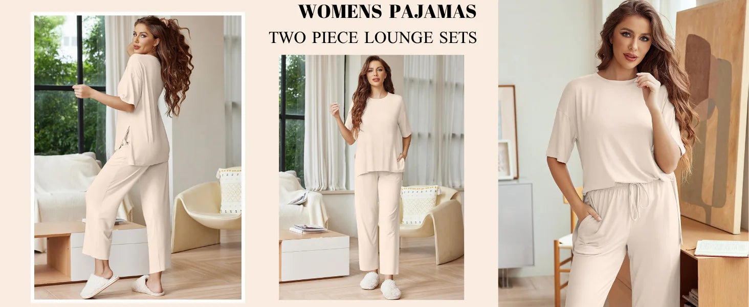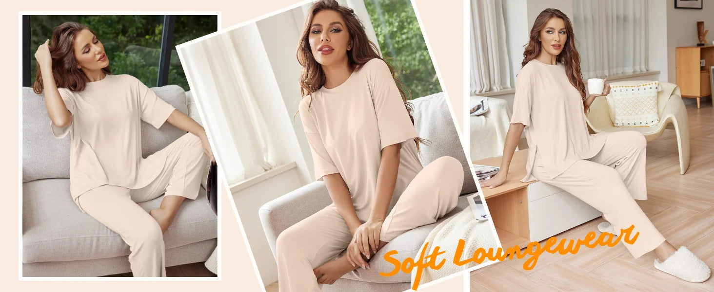 Ontspan in stijl met onze Ekouaer Lounge Sets, speciaal ontworpen voor dames die comfort en elegantie waarderen. Deze set combineert zachte korte mouwen tops met comfortabele lange broeken, ideaal voor relaxte dagen thuis of casual uitstapjes.